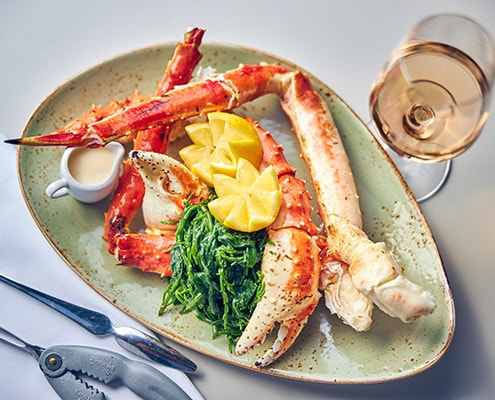 - Op de 1e avond een driegangen gastronomisch Kingcrabdiner